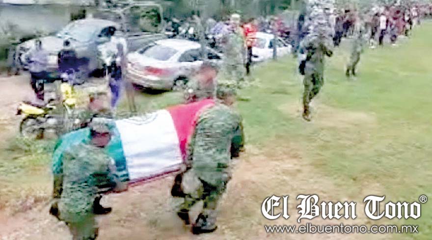 El Buen TonoIxhuatlán.- Familiares y amigos le dieron el último adiós al ex militar del Noveno Batallón, Alejandro Shamir Villarreal Guerrero, quien murió en cumplimiento de su deber en Jalisco el domingo pasado, cuando fueron emboscados por delincuentes.Varios de quienes fueron sus compañeros militares arribaron hasta su domicilio en Ixcatla para despedirlo y acompañar su cuerpo hasta el panteón municipal, ubicado en Opatla.A las 10:30 horas comenzaron los honores a la Bandera en coordinación de los elementos del Ejército, y posteriormente partieron al cementerio, junto con cientos de personas de la región.Música de viento, banda de guerra y cantos católicos fueron parte de lo que se vivió de la despedida que le hicieron a Shamir Alejandro, luego de seis días de esperar sus restos, hasta que finalmente llegaron desde Jalisco.La familia de Shamir dijo sentirse tranquila de saber que el cuerpo de Alejandro ya está en casa, después de tres años de pertenecer al Ejército Mexicano y haber recorrido varios estados de la República.Cabe hacer notar que los padres del militar muerto recibieron una bandera como reconocimiento al servicio que prestó a México.