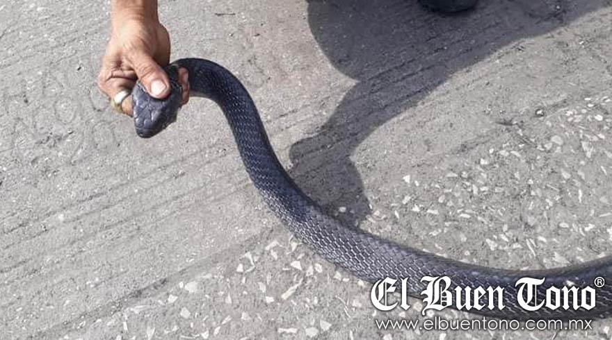 Potrero Nuevo.- Nuevamente capturan una serpiente, ahora es una de las llamadas ratoneras. De aproximadamente 2 metros, la serpiente andaba en la colonia La Angostura, pasando el puente de la represa.