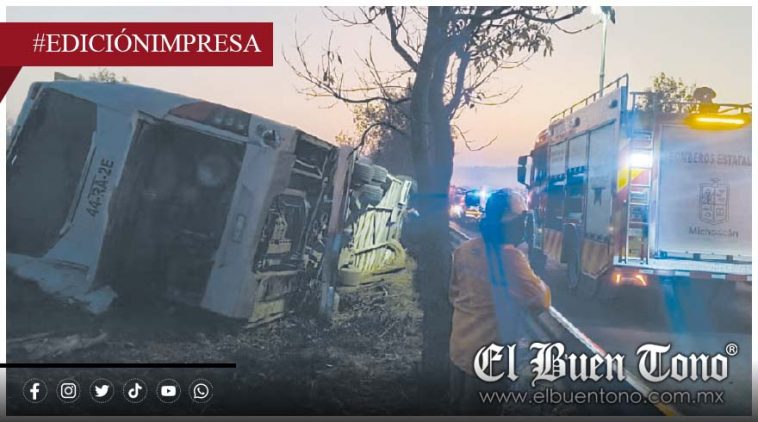 Morelia.- Siete personas murieron y 20 más resultaron lesionadas tras la volcadura de un autobús de pasajeros en la autopista Siglo XXI, tramo Pátzcuaro-Morelia. El saldo fue confirmado por los cuerpos de auxilio que acudieron al lugar.
