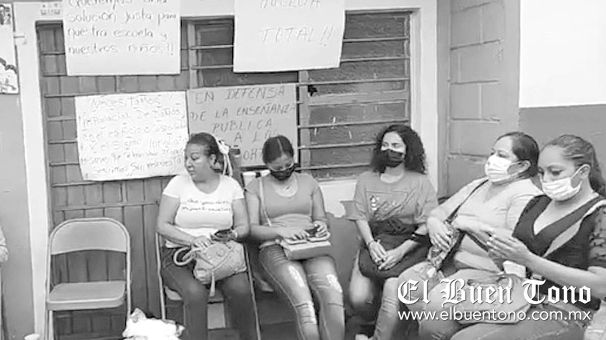 Omealca.- Por segundo día consecutivo padres de familia del Jardín de Niños “Ana María Gallaga” continúan manifestándose por la falta de maestros y reparación de daños, que sufrió el inmueble donde estudian sus