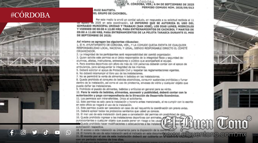El titular de Comude envió únicamente un listado con los nombres de diez grupos deportivos —de básquetbol, Cachibol y voleibol— que entrenan en ese recinto, acompañado de simples responsivas donde los entrenadores se deslindan de cualquier incidente que pudiera ocurrir. Sin embargo, no se anexó ningún contrato que formalice legalmente el uso del inmueble.