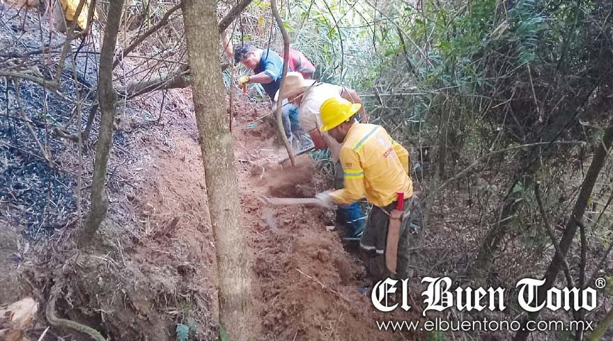 Atzacan.- Elementos de las diferentes fuerzas de tarea continúan apagando los dos incendios forestales que se mantienen activos en el municipio.