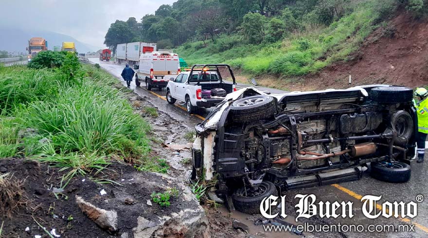 Una vez más y debido a las inclemencias del clima, el conductor de una camioneta perdió el control de ésta y volcó en la autopista Puebla-Córdoba en el kilómetro 262.