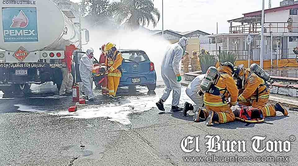 Ixtaczoquitlán.- Un derrame de diésel con tres lesionados, fue el saldo que dejó el impacto de una pipa de Petróleos Mexicanos (Pemex), contra un automóvil particular, durante el simulacro que se efectuó ayer en el marco del Día Nacional de Preparación y Respuesta a Emergencias Químicas.
