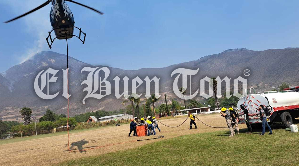 Las autoridades estatales han dispuesto del helicóptero tipo Bell de la Fuerza Civil para regar con el Bambi Bucket y rociar con agua este cerro, pero no ha sido posible apagarlo.