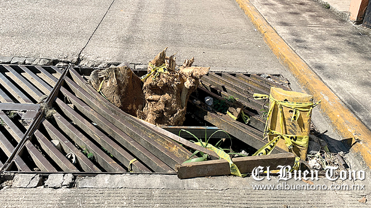 CÓRDOBA.- Una vez más, automovilistas se quejaron por los desperfectos en las rejillas del drenaje sanitario. En esta ocasión se trata del tramo correspondiente a la colonia Márquez Hoyos en la calle 33, sitio que ahora funge como una vía alterna debido al cierre del entronque de la calle 39 por las labores de contrucción de la obra del paso a desnivel. En dicho lugar, los vecinos han tenido que introducir un enorme tronco a manera de señalización para evitar incidentes.