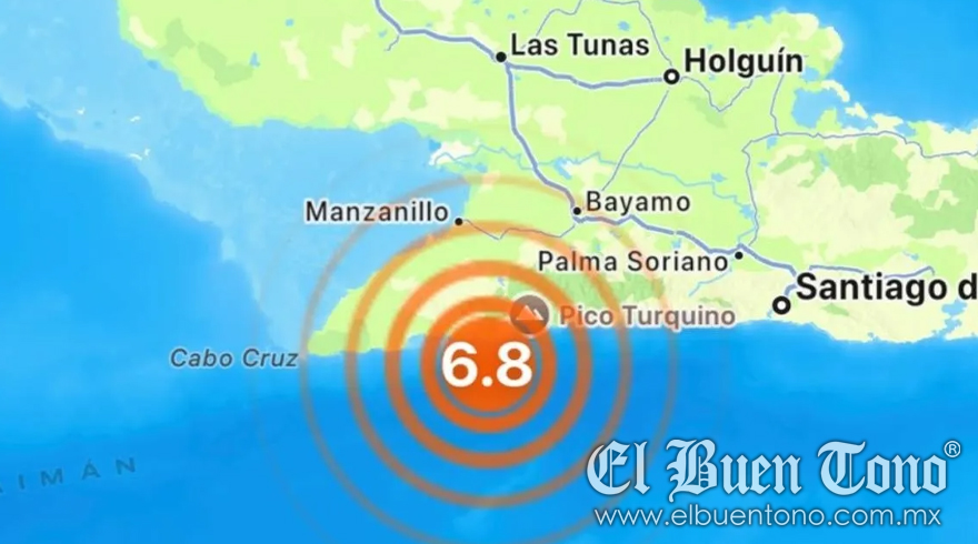 Cuba.- Un fuerte sismo de magnitud 6.8 en la escala de Richter sacudió el oriente de Cuba este domingo a las 16:50:01 UTC. El epicentro del temblor se localizó a 40 kilómetros al sur de Bartolomé Masó, en la provincia de Granma, a una profundidad de 13 kilómetros. Afortunadamente, el sismo no ha generado alerta de tsunami.