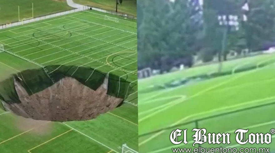 Illinois.- Un impresionante socavón se abrió en el centro de una cancha de fútbol en Alton, Illinois, tras colapsar sobre una mina de piedra caliza en funcionamiento. El incidente, ocurrido el miércoles por la mañana, también provocó la caída de un poste de luz dentro del enorme agujero, creando un peligroso abismo donde suelen jugar grupos de niños.