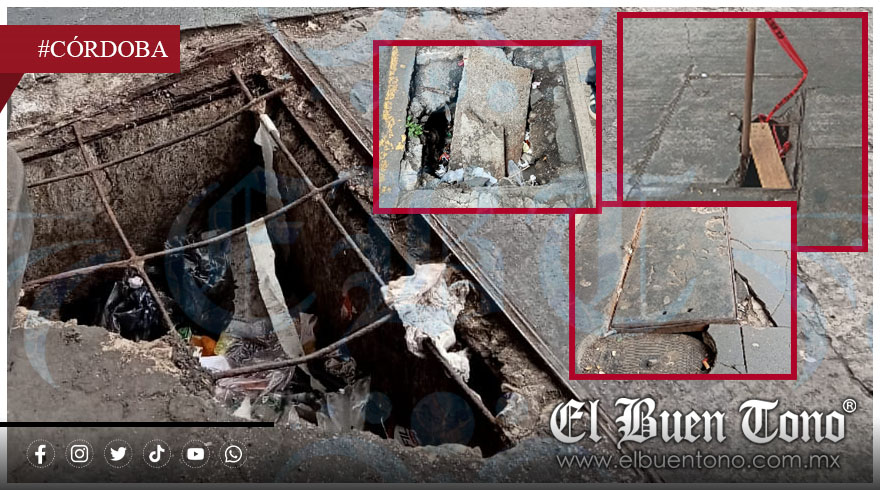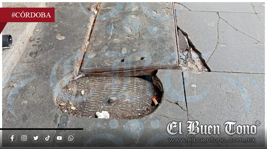 Córdoba, Ver.- En pleno centro de la ciudad, donde debería primar la seguridad y el orden urbano, la desidia institucional ha transformado una simple acera en un campo minado para peatones. En la manzana delimitada por la avenida 4, calle 7 y avenida 2, las tapas y registros de concreto y metálicos, de responsabilidad de la empresa Hidrosistema, presentan un hundimiento progresivo que ha generado pequeños pero peligrosos socavones.