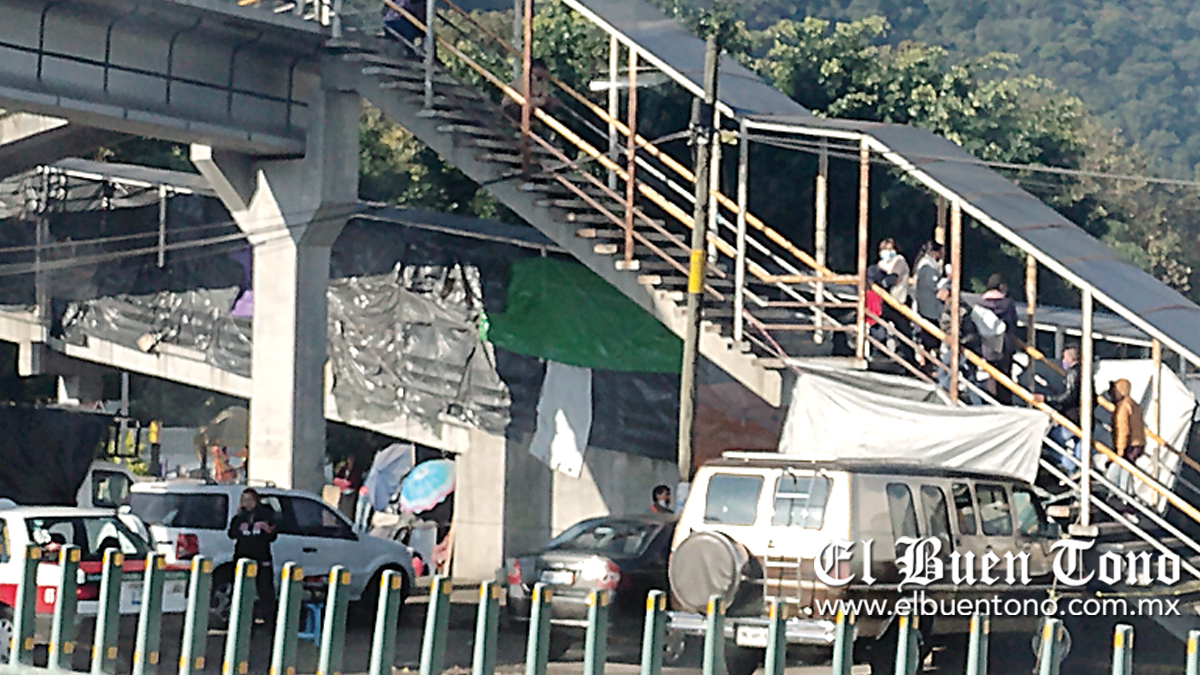 Quienes viven en municipios más retirados acondicionaron espacios en el puente peatonal, cubiertos de plásticos y lonas para protegerse de las inclemencias del tiempo; la temporada que más padecen es el invierno.