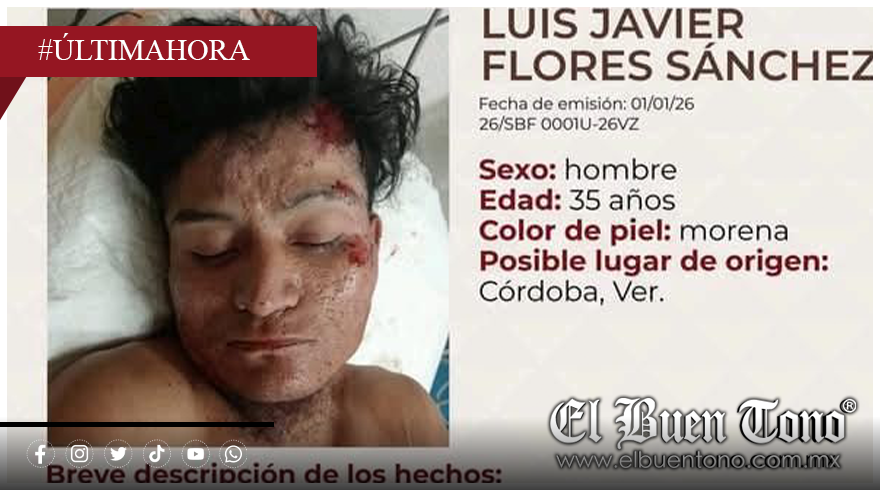 Río Blanco, Ver.—Autoridades locales solicitan la colaboración de la ciudadanía para localizar a la familia del ciudadano Luis Javier Flores Sánchez, quien fue localizado el 1 de enero en Río Blanco y se encuentra hospitalizado.