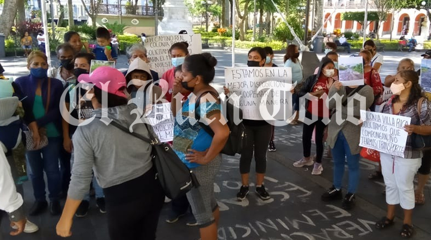 Córdoba.- Vecinos de las colonias Villa Rica, San Vicente, La Rivera, Camino Real y Los Rosales, se manifestaron de manera pacifica a las afueras del Palacio Municipal para solicitar a las autoridades la mejora del camino principal de acceso.