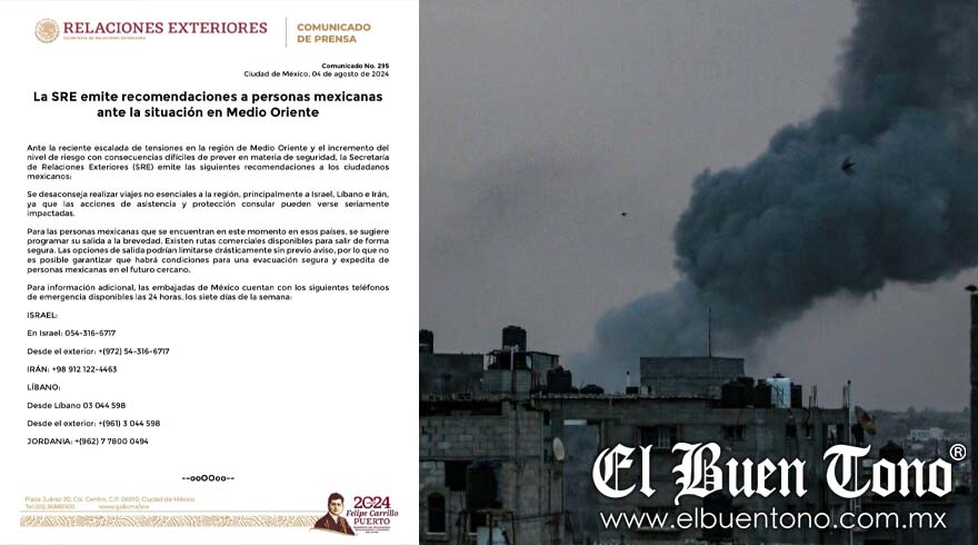 La Secretaría de Relaciones Exteriores (SRE) ha emitido una alerta crucial debido al aumento de las tensiones en Medio Oriente, especialmente en Israel, Líbano e Irán. En un comunicado reciente, la SRE desaconseja enfáticamente los viajes no esenciales a estos países debido al elevado nivel de riesgo y a la dificultad de prever las consecuencias en materia de seguridad.