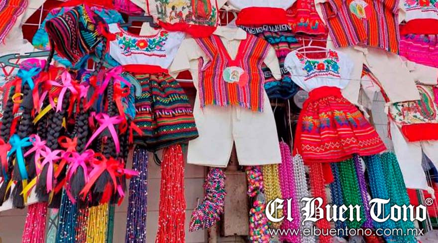 A pesar de que aún quedan siete días para que termine noviembre, diversos comerciantes ofrecen una amplia gama de artículos relacionados, desde faldas para indita hasta camisas de manta, rebozos, huaraches, sombreros y huacales.