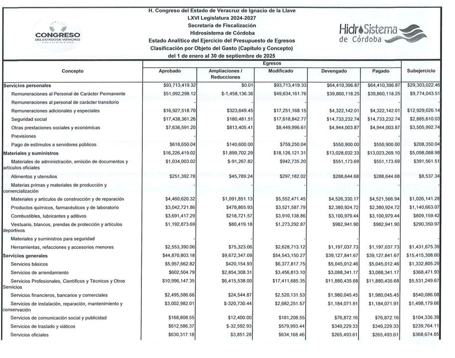 Un análisis del Estado Analítico del Ejercicio del Presupuesto de Egresos, correspondiente al periodo del 1 de enero al 30 de septiembre de 2025, revela que el organismo, a pesar de tener recursos, no los destina completamente a la mejora de la infraestructura hídrica.