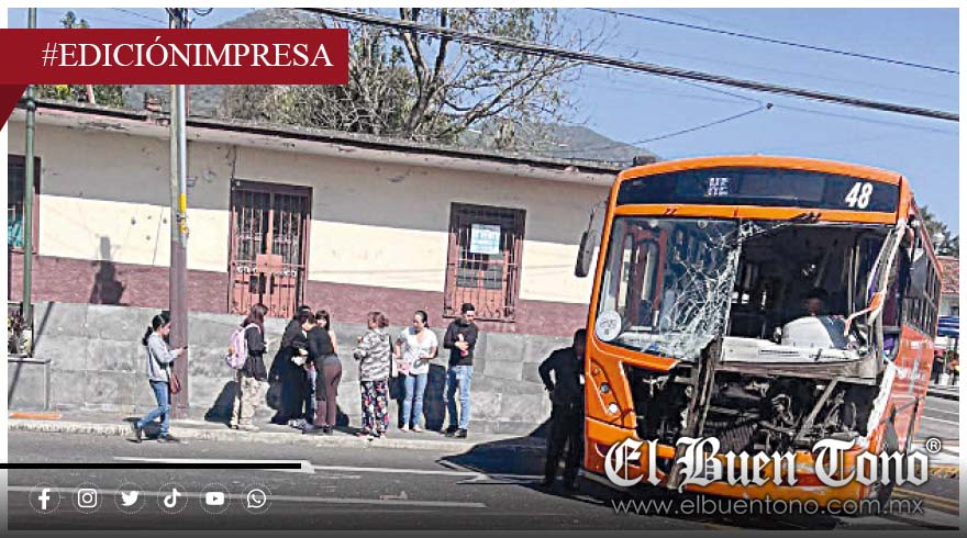 Orizaba.– Un choque entre dos autobuses de transporte público movilizó a cuerpos de emergencia el sábado en la ciudad. El accidente ocurrió cerca de las 11:00 horas cuando un autobús urbano Circuito Valle, color naranja, con el número 48, que intentaba incorporarse a la calle Oriente 6, fue impactado por un autobús Suburbano con número económico 1.