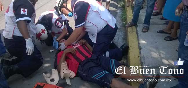 El accidente se registró ayer por la tarde cuando Erick “X”, al conducir una motocicleta en la cual se desplazaba sobre la calle 12, al momento de dar vuelta hacia su lado izquierdo para incorporarse a la avenida 36 se desmayó lo que ocasionó que perdiera el control y cayera de la motocicleta hasta rebotar contra el pavimento.