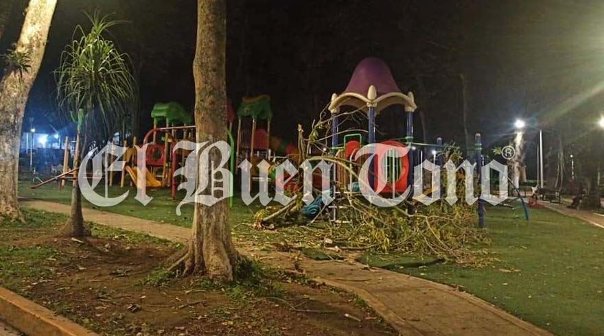 Finalmente al caer la noche se confirmó que se había registrado la caída de ramas y árboles en algunos espacios públicos como la alameda Agustín Chicuellar en donde las ramas destrozaron parte de los juegos infantiles.