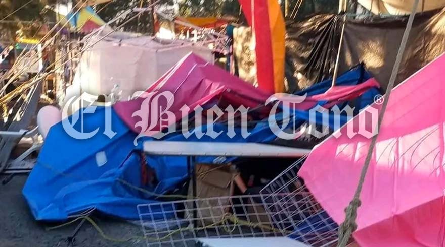 Derivado de ese fuerte viento, ya se tiene registro de caída de cables, la caída de un árbol en la primaria Ignacio Llorente, así como el derribo de los toldos y lonas de los puestos instalados en la feria del juguete, estos afectados por segundo día consecutivo.