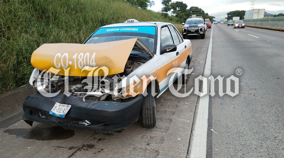Córdoba, Ver.- Dañado de su parte frontal resultó el taxi CO-1804, al chocar por alcance contra una camioneta Chevrolet, durante la mañana de este jueves en la autopista Córdoba-Veracruz, tramo distribuidor vial El Diamante-Trébol de Amatlán.