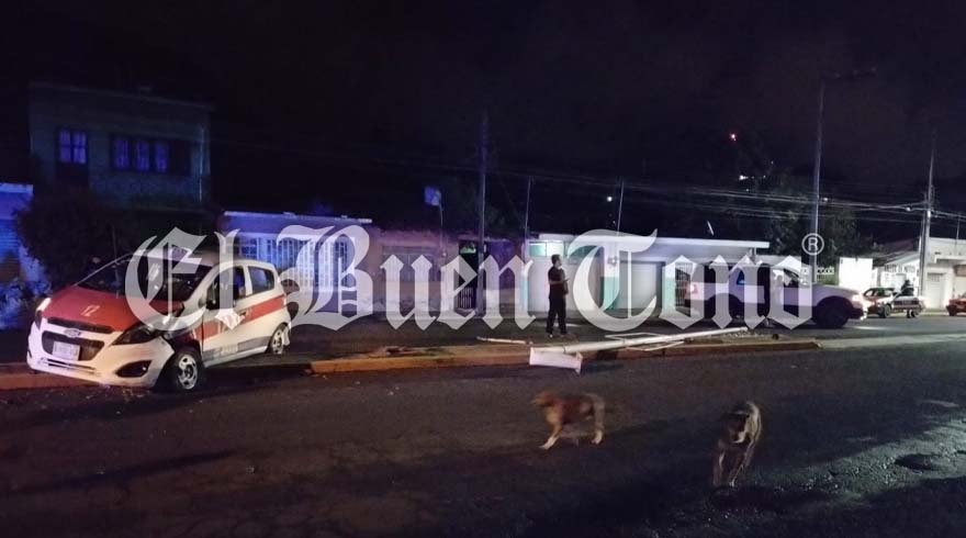 Nogales.- Durante la madrugada el conductor de un vehículo de alquiler perdió el control de éste mientras circulaba por la avenida Hidalgo y terminó chocando contra una luminaria, derrumbándola.