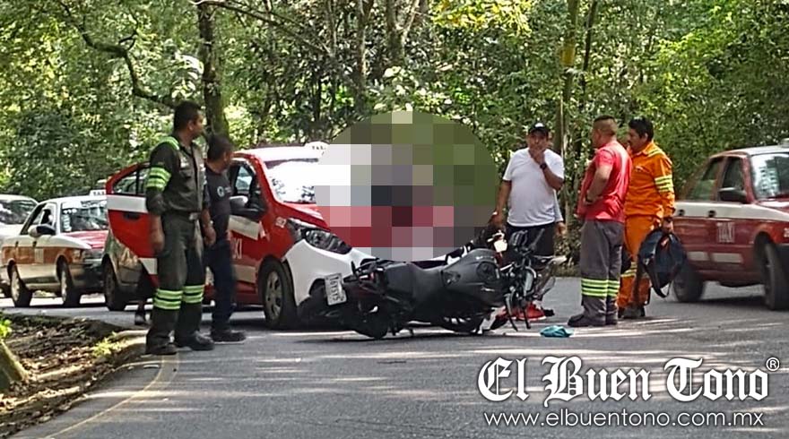 Ixtaczoquitlán. – Un empleado de Talleres y Aceros resultó herido después de ser impactado de manera frontal por un taxi mientras descendía la cumbre de Tuxpango en su motocicleta.