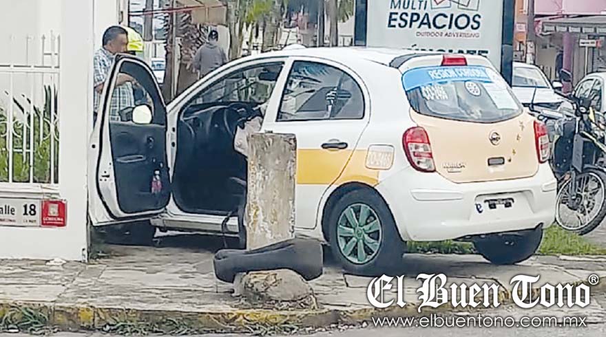 Córdoba.- El taxi con número CO-2466 se salió de la carretera y colisionó contra una vivienda, después de que su conductor perdiera el control debido a una descompensación, la tarde de ayer jueves en la avenida 21 y calle 18 del fraccionamiento Lomas.