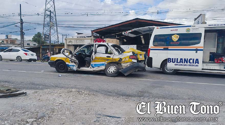Al lugar llegaron paramédicos del grupo Samuv para brindar el auxilio y apoyo necesario al conductor de la unidad de alquiler, Lorenzo Jiménez Ramírez, de 52 años de edad, habitante de la comunidad de Los Ángeles, en Amatlán, quien resultó con diversas lesiones.