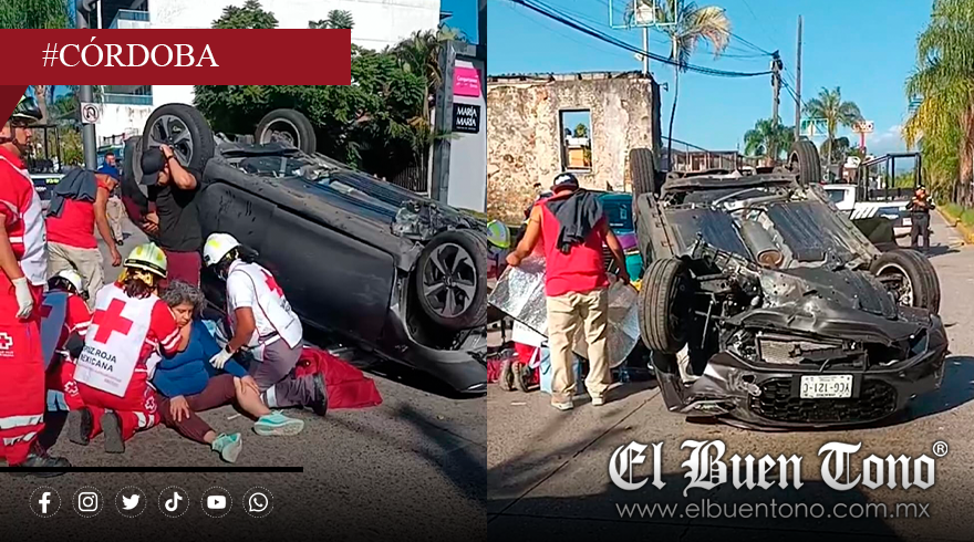 Córdoba, Veracruz.— Sábado 27 de diciembre de 2025. La mañana de este sábado se registró un percance vial que dejó como saldo dos personas lesionadas, luego de la volcadura de un automóvil particular en el cruce de la calle 24 y avenida 1, en el municipio de Córdoba.