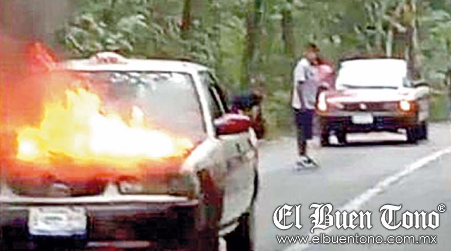 Ixtaczoquitlán.- Una falla mecánica provocó que un taxi se incendiara mientras circulaba sobre las cumbres de Tuxpango, la mañana de ayer sábado, sin que se registraran personas lesionadas.