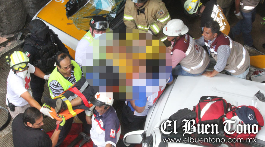 Córdoba.- De las seis personas lesionadas en una carambola la mañana martes en el puente a desnivel, donde participó un autobús de pasaje Rápidos del Sureste, dos unidades de alquiler, una Tacoma y un motociclista, cinco de los lesionados fueron dados de alta, mientras que el taxista José Valentín Rodríguez Aguilar, de la unidad CO 185 quien quedó prensado, su estado de salud es reportado como delicado pero estable.