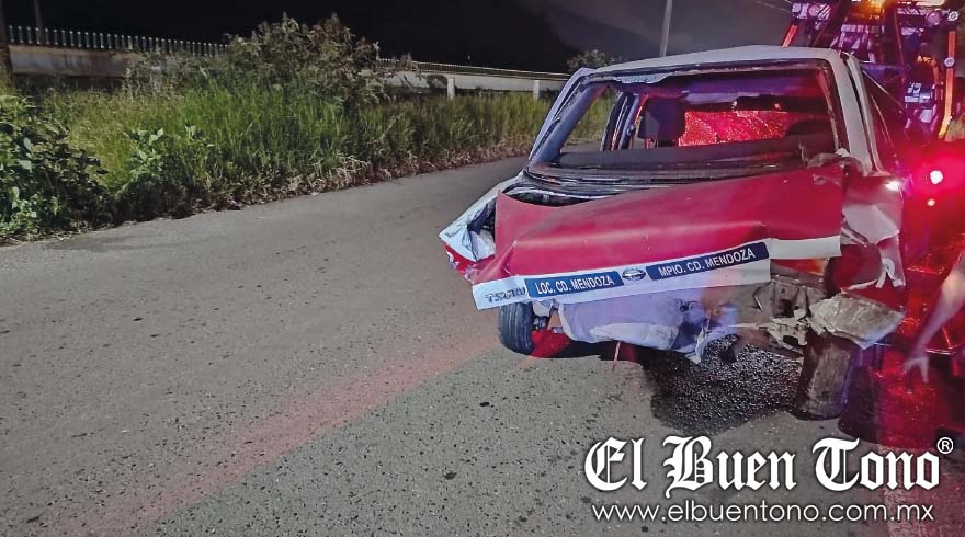 Se informó que el conductor de la unidad de alquiler con número económico 112 de Ciudad Mendoza, circulaba por su carril cuando fue impactado por alcance por un tráiler, lo que provocó que saliera del camino y volcara.