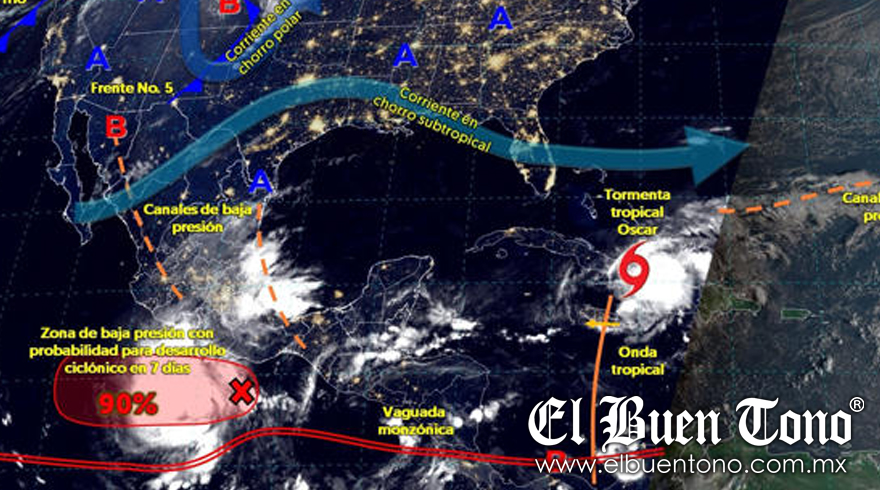Ciudad de México.- El Servicio Meteorológico Nacional (SMN) ha informado que se esperan condiciones climáticas adversas en diversas zonas del país debido a la interacción de varios fenómenos meteorológicos. Una zona de baja presión con posibilidad de desarrollo ciclónico, localizada al sur de las costas de Guerrero y Michoacán, interactuará con un canal de baja presión sobre el oriente y sureste de México, así como con la vaguada monzónica.