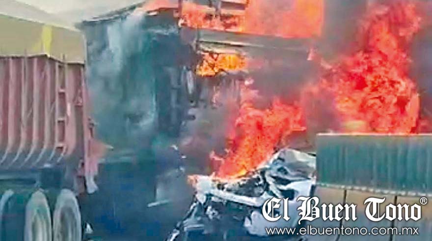 En menos de tres minutos, la camioneta y la cabina del torton se incendiaron, automovilistas que pasaban por el lugar, rescataron a los conductores de morir calcinados.