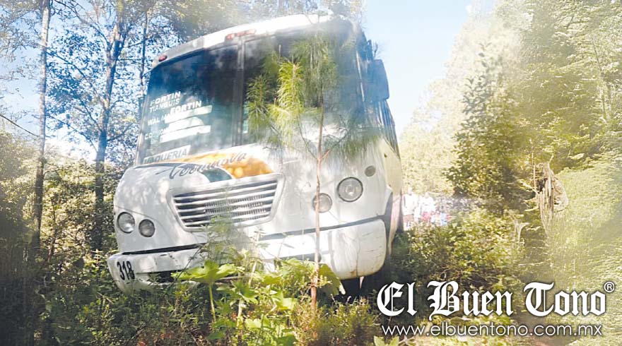 Calcahualco.- Un autobús de la línea Terranova estuvo a punto de caer a un barranco con varios pasajeros, luego de que el conductor perdiera el control en una curva y se saliera de la carretera a la altura de la localidad de Vaquería.