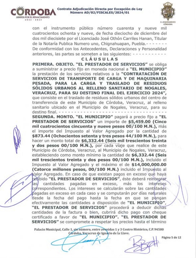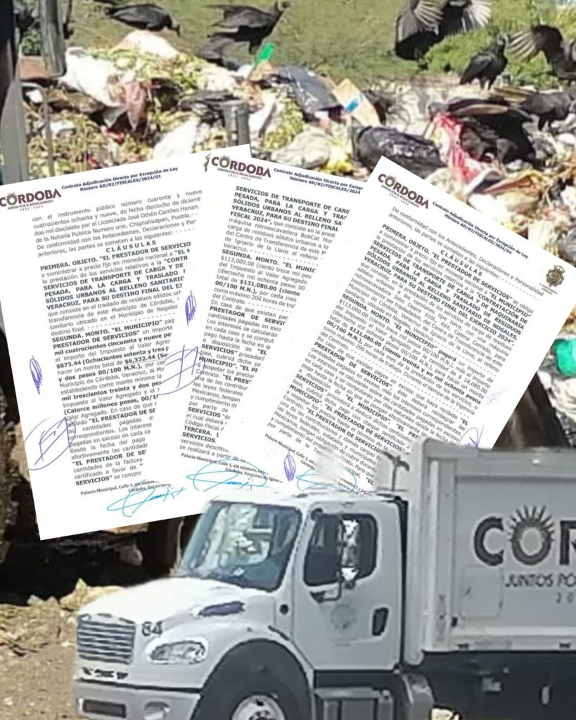 Córdoba, Ver.- El titular de Servicios Municipales de Córdoba, René Moshe Burguette, atribuye a la “irresponsabilidad ciudadana” la crisis de acumulación de basura que sufre la ciudad, pero los contratos millonarios firmados por el propio municipio desmienten: los documentos establecen de forma clara y detallada que la responsabilidad total del mantenimiento, reparación y operatividad de las unidades recae íntegramente en los proveedores privados, quienes recibieron del erario más de 92 millones de pesos en 2024 por garantizar un servicio continuo y eficiente.