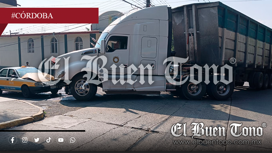 Córdoba.- Un tráiler tipo tolva del departamento de Limpia Pública de Córdoba se impactó de frente contra un taxi con número económico CO-1642, en el cruce de la calle 9 con avenida 41, en la colonia Paraíso.