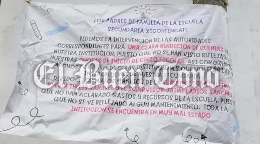 “Los padres de familia de la escuela secundaria Xicoténcatl pedimos la intervención de las autoridades correspondientes para una clara rendición de cuentas de nuestra institución, ya que no se han reflejado nuestras cuotas de inicio de ciclo escolar, así como otros apoyos por parte de instituciones que utilizan las instalaciones de nuestra secundaria debido a los malos manejos de la subdirectora Delfina Bertha Thelis Ramírez y el supervisor Jaime Larios Sánchez, quienes no han aclarado los gastos y recursos de la escuela, ya que no se ha realizado ningún mantenimiento. Toda la institución se encuentra en muy mal estado”.