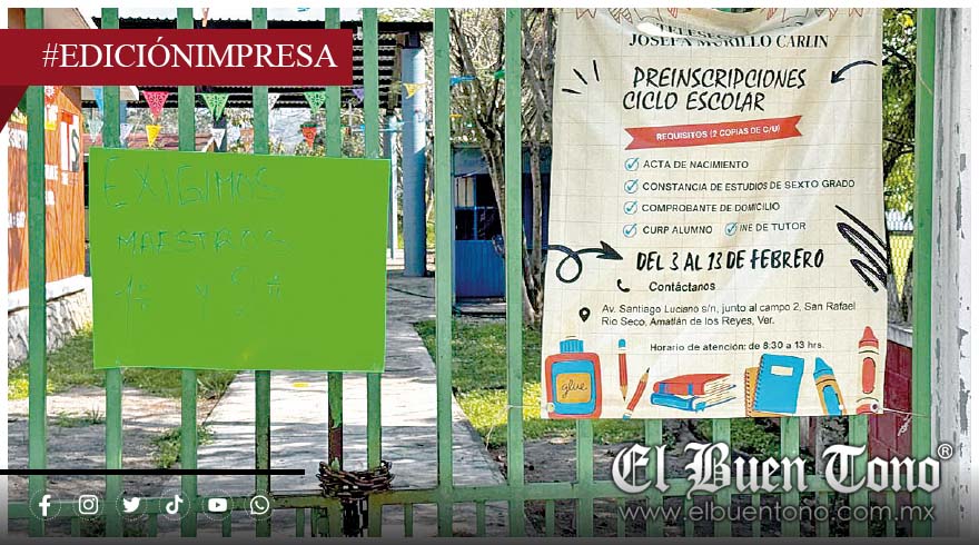 Precisaron que uno se requiere para el primer grado y el otro para el segundo, “carecemos del personal desde hace seis meses, en octubre de 2025, el maestro encargado de segundo grado se jubiló”.