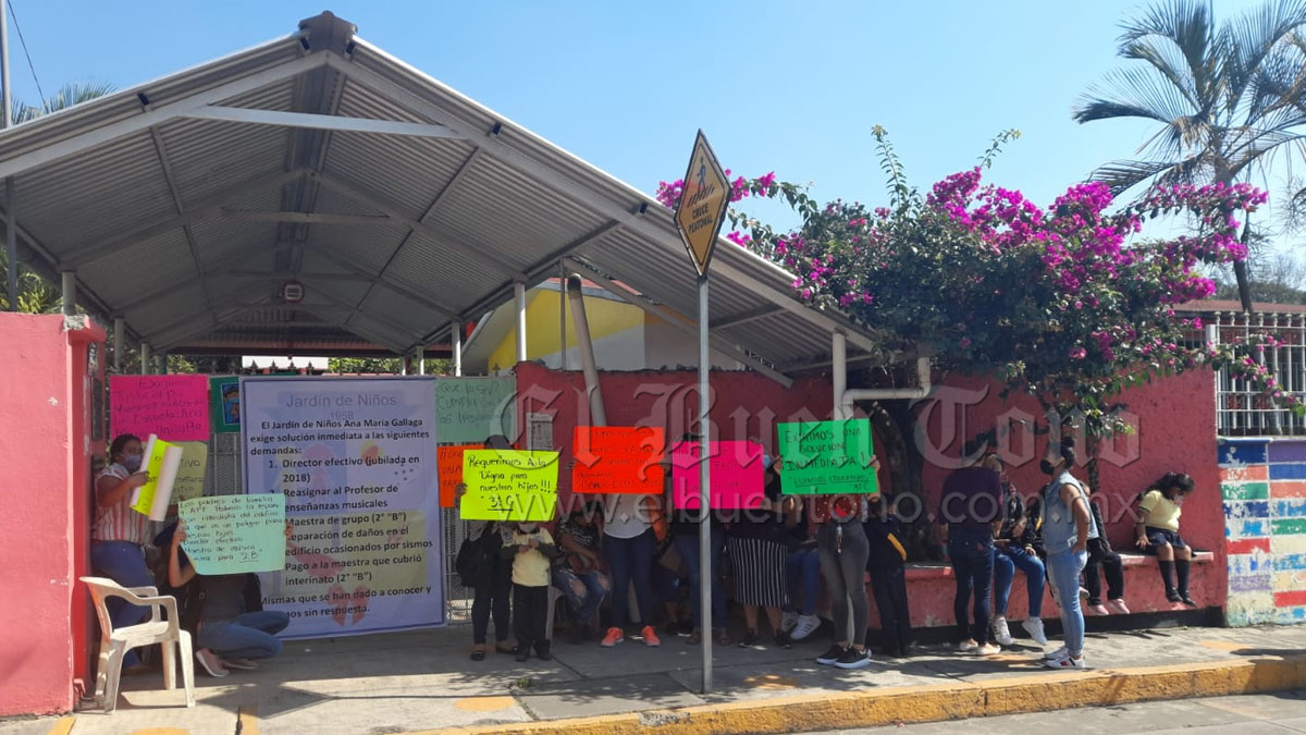Omealca.- La mañana de este lunes, padres de familia del Jardín de Niños “Ana María Gallaga” tomaron las instalaciones de ese plantel, exigen reparación en el edificio provocadas por los últimos sismos, así como un director y un profesor.
