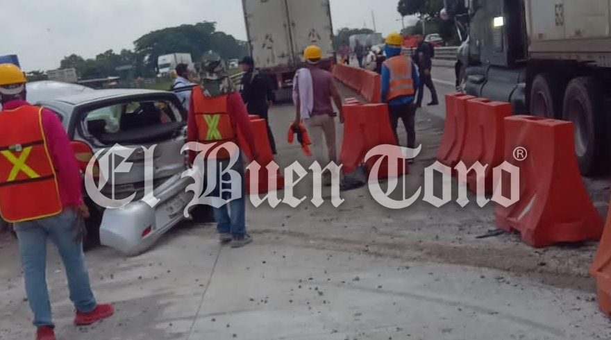 El accidente, que sólo dejó daños materiales, se originó debido a la irresponsabilidad de los trabajadores que realizan obra de mantenimiento sin el abanderamiento adecuado, además de la falta de precaución de los conductores.