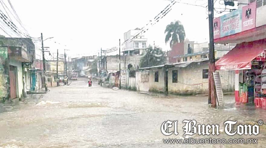 Fortín.- La tormenta que se registró la tarde de ayer en la zona dejó varias calles inundadas, en la unidad habitacional Lomas de San Marcial y Santa Leticia.
