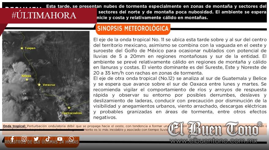 La situación meteorológica se complica por la onda tropical número 12, que avanzará sobre el sur de Oaxaca, incrementando la probabilidad de deslaves, inundaciones urbanas y afectaciones en la red vial.