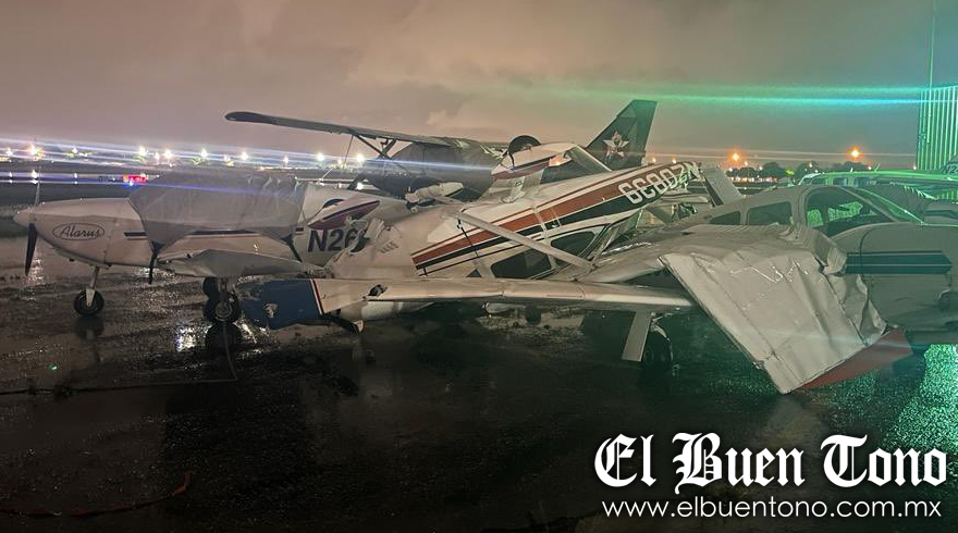 En la zona se observan aeronaves encima de otras y otras que quedaron completamente volteadas y con daños graves en las alas y la cabina.