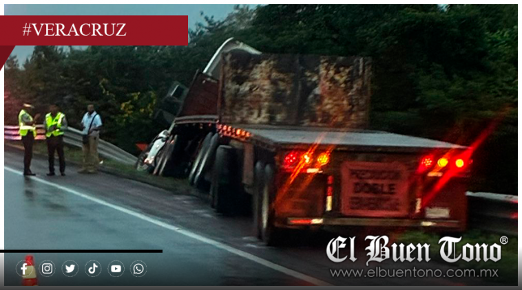 Paso del Toro, Ver. — Esta mañana, un tractocamión con doble plataforma impactó contra la barra de contención en el kilómetro 87 de la autopista Córdoba-Veracruz.
