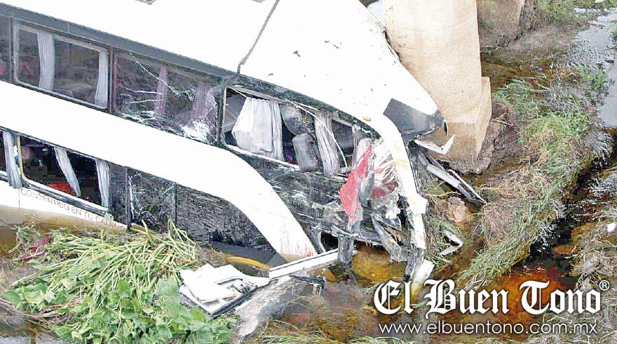 Chacaltianguis.- Doce muertos y más de 50 heridos, entre ellos varios menores de edad, es el saldo preliminar que dejó un accidente registrado la madrugada de ayer martes, cuando un autobús de turismo se cayó de un puente ubicado sobre la autopista La Tinaja-Cosamaloapan, en un tramo entre José Azueta e Isla, a la altura del kilómetro 99.