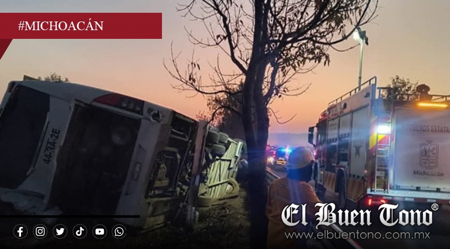 Morelia, Mich.— Una fuerte movilización de cuerpos de emergencia se registró la mañana de este sábado en la carretera Morelia–Pátzcuaro, a la altura de la tenencia de Tiripetío, donde un autobús de pasajeros volcó, dejando un saldo preliminar de al menos 10 personas fallecidas y alrededor de 20 lesionadas.