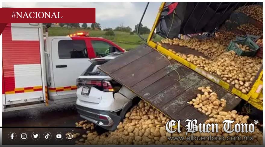 Los primeros reportes indican que el conductor de un tráiler que transportaba papas perdió el control de la unidad, impactó contra al menos tres vehículos particulares y terminó volcado. La caja del tráiler cayó sobre un auto compacto Nissan Versa con placas de Querétaro, el cual fue completamente aplastado. Dentro del vehículo viajaba la víctima mortal del percance.