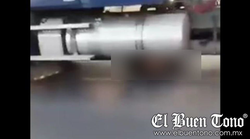 Nacional.- En redes sociales se ha viralizado un video en el cual se puede ver que una persona se atoró en la parte de abajo de un tráiler después de sufrir un accidente vial, y lamentablemente es arrastrado en contra del pavimento durante varios kilómetros, aparentemente sin vida.