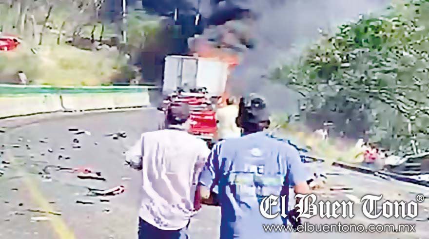 Uno de los tractores cayó en una vivienda, mientras que el otro se incendió tras el impacto violento en el kilómetro 261 de la autopista Veracruz-México, en la dirección descendente.